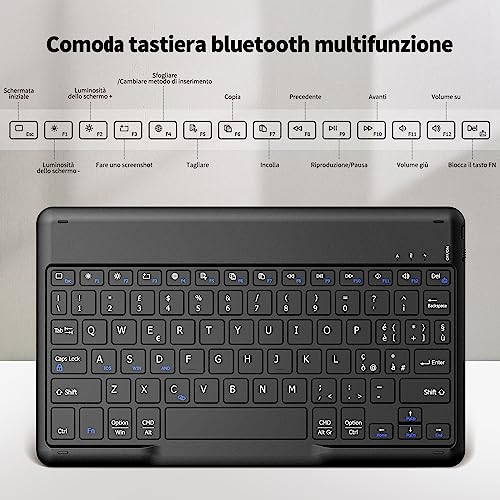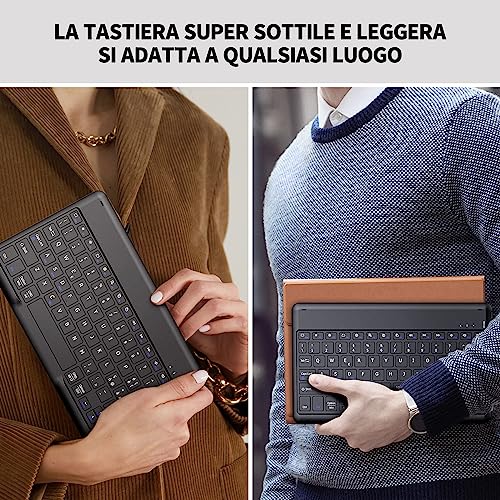 EasyAcc Tastiera Bluetooth Wireless con Windows/Android/iOS, Tastiera Portatile con Tablet Layout Italia, Tastiera con Cavo Tapec da 80 cm, Nero