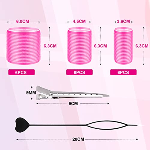 EasyBee Set di 28 Bigodini, Jumbo Grande Piccolo Bigodino Autoadesivo 60mm 45mm 36mm con 10 Forcine per Saloni Lunghi Medi Corti