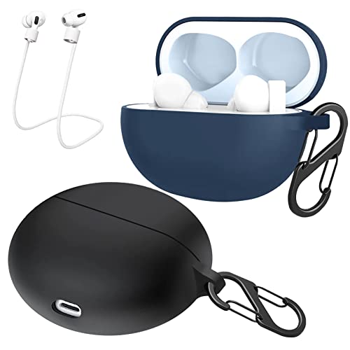 EasyBee 2 Pacchi Cover Custodia in Silicone Compatibile con Oppo Enco Air 2i Cuffie Bluetooth e 2 Moschettone Portachiavi 2 Cinturino Anti-perdita, Protezione Completa Antiurto - Nero e Blu