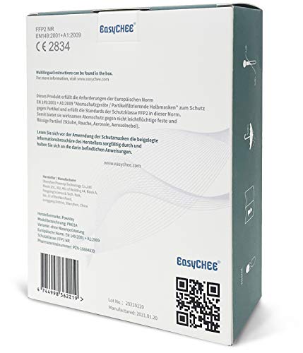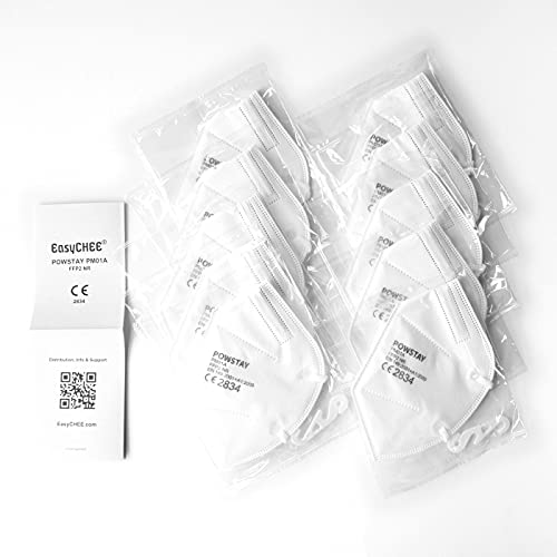 EasyCHEE Powstay PM01A (s) Maschera di protezione antiparticolato FFP2 NR, CE 2834, filtrazione a 5 strati, 10 pezzi, bianco, Taglia unica