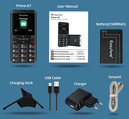 Easyfone Prime-A7 Telefono Cellulare per Anziani, Display 2.0'' HD+ IPS LCD, Tasto SOS mit GPS, Batteria 1500 mAh con base di ricarica (Nero, GSM)