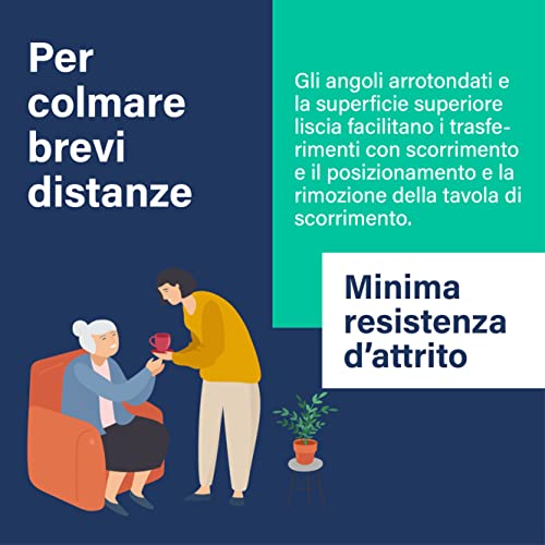 SICURA: La tavola di scorrimento in resistente polietilene ha una superficie liscia che facilita lo scorrimento con minimo attrito. Le strisce antiscivolo sul lato inferiore impediscono che slitti durante i trasferimenti