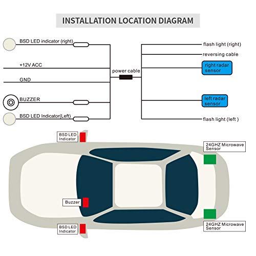 Con 2pcs 24GHz sensore a microonde, sonda il lato posteriore del veicolo per spostare oggetti nella zona cieca della zona di rilevamento.