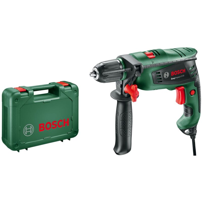 Il trapano avvitatore a percussione 570 W con accessori 0603130104 Bosch Hobby EasyImpact 570 + Set X33 è un potente elettroutensile a filo per hobbisti ed appassionati di fai da te.Questo trapano da 570 W risulta potente ma maneggevole, ideale per avvitare o forare su legno, metallo e calcestruzzo o muratura. Ergonomico e semplice da utilizzare, grazie all'impugnatura morbida sarà semplicissimo portare a termine efficientemente anche i progetti più complicati.Il peso contenuto e le dimensioni compatte lo rendono adeguato anche ad utilizzi particolarmente complessi in spazi stretti oppure per lavorazioni anche a soffitto.Il meccanismo battente di questo avvitatore con percussione risulta ottimizzato, erogando fino a 33000 colpi al minuto garantisce una foratura più rapida fino al 25% rispetto ai prodotti pari potenza di livello hobbistico.Il trapano EasyImpact 570 offre una vasta gamma di applicazioni, grazie al mandrino mono bussola autoserrante con capacità 13 mm