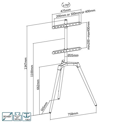 ✅ Universale: treppiede TV regolabile in altezza, standard VESA fino a 400 x 400 e asta orientabile fino a 140°, ideale come supporto per TV o monitor