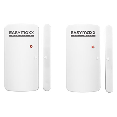 EASYmaxx 02481 Sistema di Allarme di Sicurezza per Porte e finestre, sensore Magnetico, 110 Db, Fori, Senza Fili, Telecomando Incluso, Bianco
