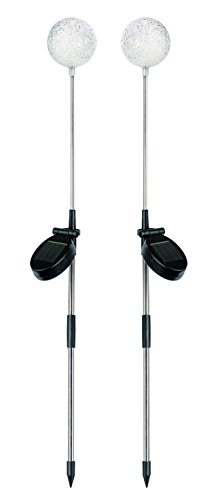 EASYmaxx Solar-Led-Leuchte Glitzer-Farbwechsel-Kugel 2er-Set Edelstahl, Rostfrei (Garten, Camping, Vorgarten, Terasse)
