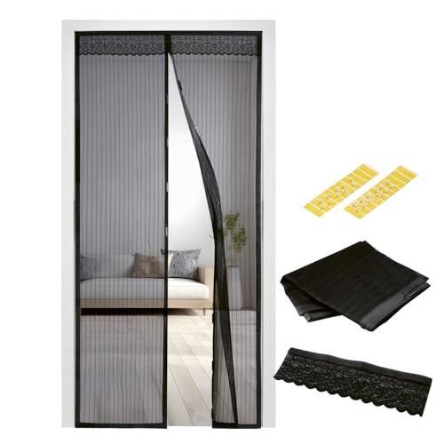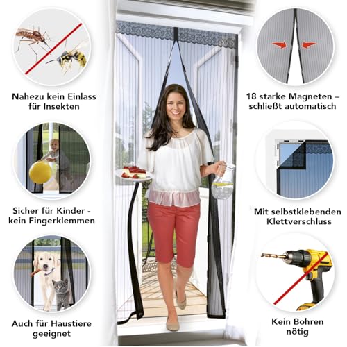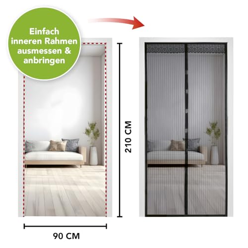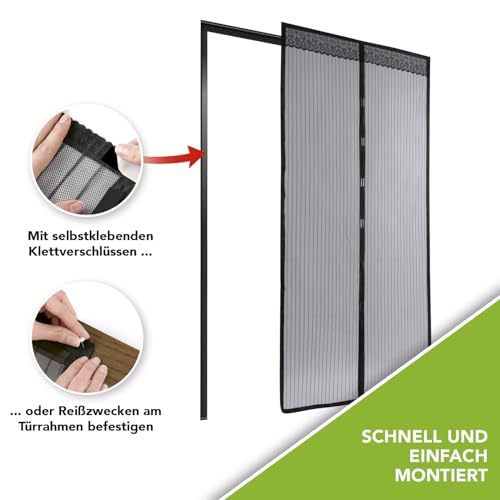EASYmaxx tenda per porta 90 x 210 cm"Magic Click" | Per la protezione contro mosche e altri insetti | Pratica chiusura magnetica, facile montaggio adesivo [nero]