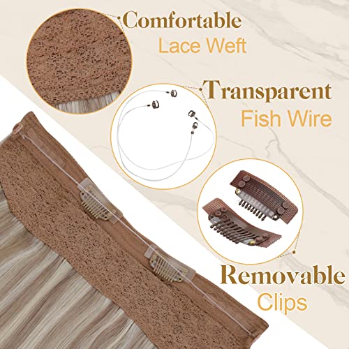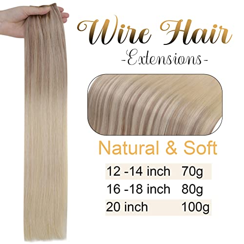Easyouth Secret Wire Extension Veri Extension Filo Invisibile Capelli Veri 16 Pollice 80g Colore Biondo Cenere Mix Biondo Medio e Biondo Platino Remy Hidden Fish Line Double Weft Extension