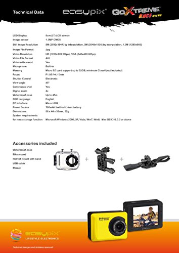 Easypix GoXtreme Race Micro - Action-Kamera - montierbar - High Definition - 1.3 Mpix - Flash-Karte - Unterwasser bis zu 45 m