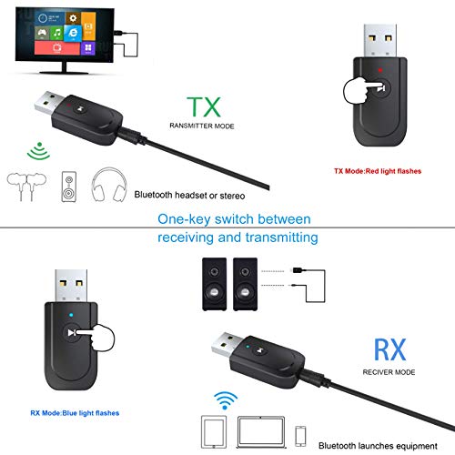 4 in 1 Adattatore Bluetooth: ci sono 2 modalità (TX e RX), La modalità TX (luce rossa) è per il trasmettitore e RX (luce blu) è per il ricevitore. Nome di accoppiamento (modalità ricevitore): RT-09.Puoi passare facilmente dalla modalità trasmettitore a quella di ricezione premendo un pulsante!