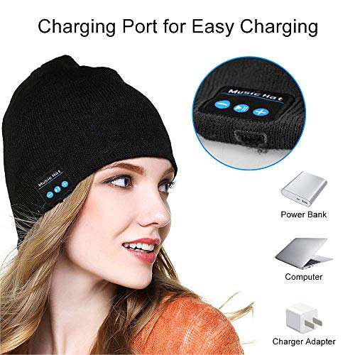 EasyULT Berretto Musicale Bluetooth Cappello, Lavorato a Maglia Cappello con Altoparlanti Stereo e Microfono, Regali per Uomo e Donna, per Corsa Sport all'Aria Aperta-Nero