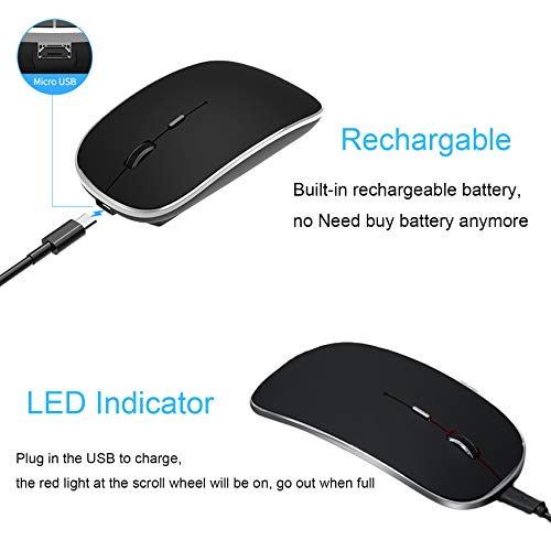 EasyULT Mouse Bluetooth, Mouse Wireless Ricaricabile Silenzioso a Due modalità (Bluetooth 5.1+2.4G), 3 Livelli DPI(1000/1200/1600) Regolabili, 4 Pulsanti, per Notebook, PC, MacBook(Nero)