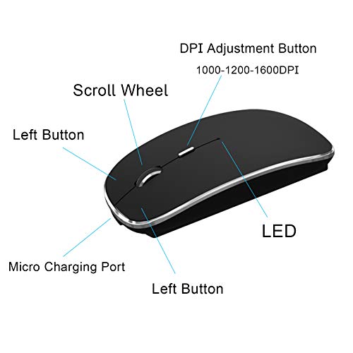 Trasmissione dati wireless a 2,4 GHz: la tecnologia di trasmissione wireless a 2,4 GHz fornisce una connessione potente e affidabile fino a 10 metri. Connessione Bluetooth stabile. mouse ottico per PC con 1000/1200/1600 DPI. Un'esperienza più sicura e più accurata rispetto a un mouse USB tradizionale.