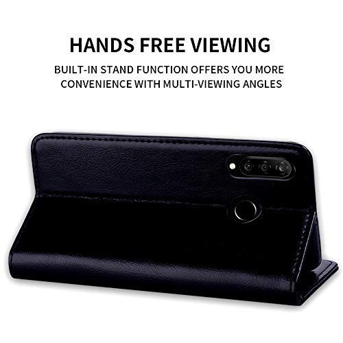 EATCYE Cover per Huawei P30 Lite,Custodia In Vera Pelle Flip Stile Pelle Libro Portafoglio in pelle Ultra sottile Con Magnetic Closure Paraurti - Nero