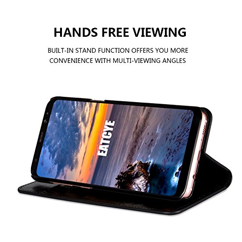 Visualizzazione a mani libere: La EATCYE custodia in Vera Pelle per Samsung Galaxy S9 plus ha una funzione di supporto che ti risulterà più comodo per vedere filmati da molteplici angolazioni