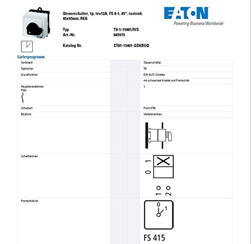 Eaton 045973 di un interruttore, contatti: 1, 20 a, scudo anteriore: 0 - 1, 45 gradi, Blocco, Deviatore