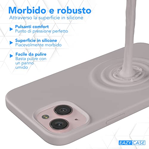 EAZY CASE Premium Silicone Custodia per cellulare compatibile con iPhone 13, Slimcover con protezione della fotocamera e fodera, Custodia in silicone, copertura protettiva, Marrone Rosa