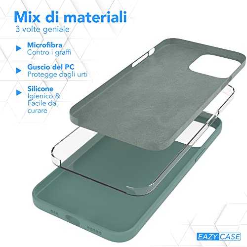 EAZY CASE Premium Silicone Custodia per cellulare compatibile con iPhone 13 Pro Max, Slimcover con protezione della fotocamera e fodera, Custodia in silicone, copertura protettiva, Verde Notte