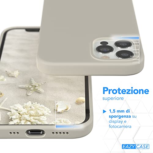 EAZY CASE Silicone Custodia per cellulare compatibile con iPhone 12/12 Pro, Slimcover con protezione della fotocamera e fodera, Custodia in silicone, copertura protettiva, Tortora