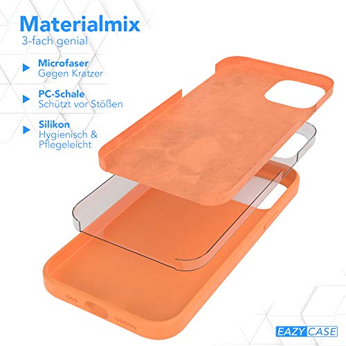 EAZY CASE Silicone Custodia per cellulare compatibile con iPhone 12/12 Pro, Slimcover con protezione della fotocamera e fodera, Custodia in silicone, copertura protettiva, Arancione