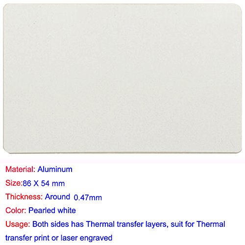 1. Questa scheda di alluminio è di colore bianco perla, 0,45 mm di spessore. 10 pezzi per confezione, 86 x 54 mm, dimensioni simili alla carta di credito. Angolo vuoto/rotondo/bordo non ruvido