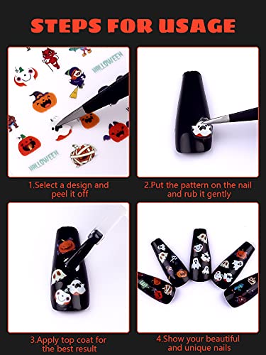 Disegni unici: adesivi per unghie dal design unico per Halloween ti regaleranno un'atmosfera di vacanza più forte. Include tutti i tipi di modelli classici in stile Halloween come zucche, teschi, zanne, pipistrelli, tombe, ecc.