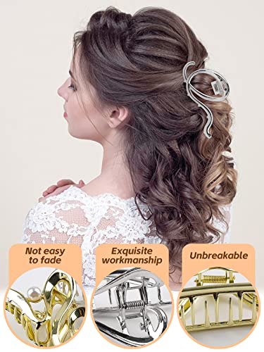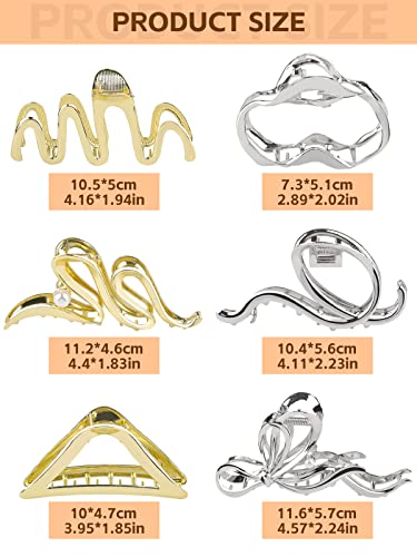 ❀❀TAGLIA UNICA: Disponibile in 6 stili in oro e argento, i fermagli in metallo di diverse forme sono abbastanza grandi per tutti i tipi di capelli, come capelli spessi, capelli sottili, capelli ricci, capelli lisci, capelli mossi, capelli lunghi, corti o capelli fini e altro ancora, che si tratti di capelli raccolti in una crocchia o di altri stili fantasiosi, gli artigli per capelli li tengono con facilità.