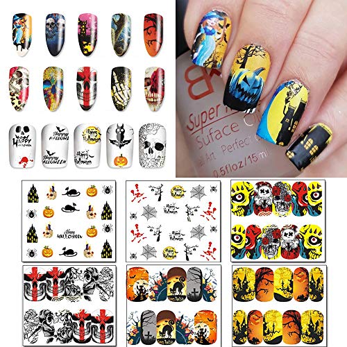 EBANKU 50 Fogli Halloween Adesivi Unghie Decalcomanie Trasferimento ad Acqua Fai da Te per Arte Unghie Adesivi Autoadesivi Water Decals Nail Stickers per Decorazioni Unghie