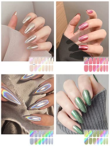 ✔ Adesivi olografici per smalto - Nessuna abilità richiesta, effetto laser facile da ottenere, appositamente progettato per i principianti, gli impacchi per unghie olografici daranno un effetto così carino, rendendo le tue unghie brillanti e attraenti.