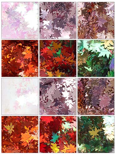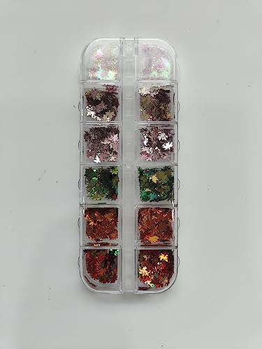 Glitter per unghie foglia d'acero: 12 brillantini per unghie foglia d'acero, ogni scatola con 12 griglie, puoi scegliere diversi colori per le unghie fai-da-te, che possono rendere le tue unghie più lucide in una luce diversa.