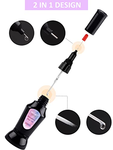 EBANKU 2 Pezzi Forte Colla per Unghie Gel con Pennello, Gel colla unghie finte per Strass, Ahesive UV Gel Colla per unghie, colla unghie per manicure da donna
