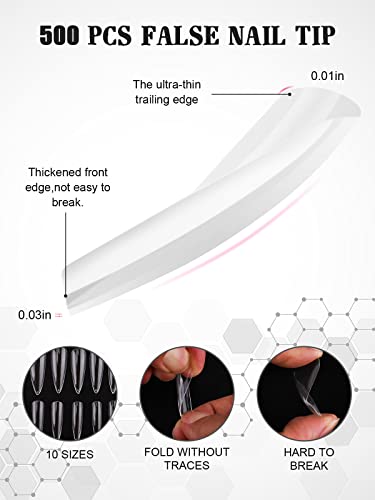 EBANKU 500 Pezzi Unghie Finte con Solid Colla, Colla per Unghie Extra Forte Stiletto Unghie Tips Set con UV LED Mini Lampada Unghie Lime per Unghie Finte Tagliagunhie