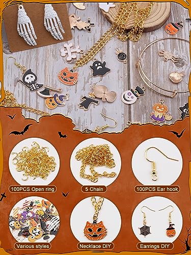 EBANKU 70 piezas de abalorios Halloween para hacer joyas, colgante aleación con 100 piezas gancho para la oreja y 5 piezas de collar con adorno de fantasma calabaza para joyería,collar,fabricación B