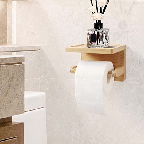 EBEAKA Porta Carta Igienica, Porta Carta Igienica Senza Foratura, Porta Rotolo con Ripiano Vassoio, Portarotolo Carta Igienica in Bambù per Riporre Multifunzione in Bagno, Toilette