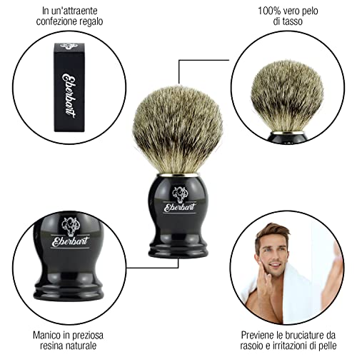Eberbart Pennello barba in tasso (incl. EBook Gratuito) - Pennello da Barba Professionale di alta qualità in pelo di vero tasso con confezione regalo - per una rasatura delicata e profonda