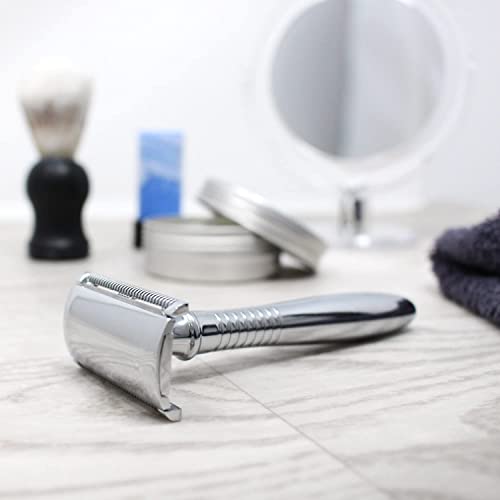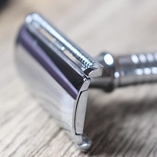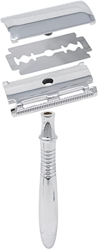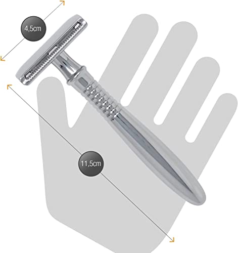 RASOIO DI SICUREZZA - Il rasoio di sicurezza con pettine chiuso e testina a doppia lama è il miglior rasoio dritto per una rasatura accurata e confortevole. È anche il miglior rasoio per pelli sensibili. Il pettine chiuso protegge la pelle dalle lame e la testina a doppia lama assicura una rasatura accurata.
