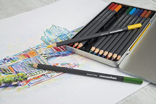 Eberhard Faber 516112 - Matite colorate Artist Color, astuccio in metallo con 12 colori, forma esagonale, per grafica moderna, disegni fini e acquerelli colorati