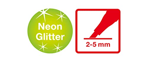 Eberhard Faber 551408 - Mini evidenziatori di testo con punta a cuneo, 5 evidenziatori in colori neon con effetto glitter, evidenziatore per scuola, università, ufficio e tempo libero