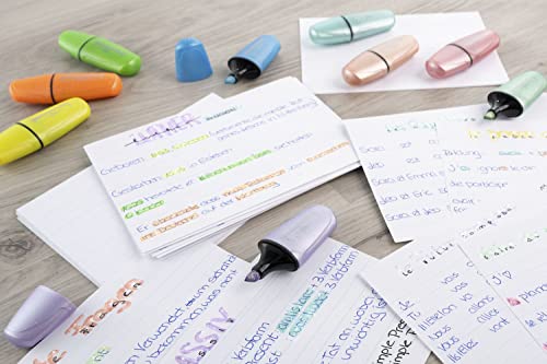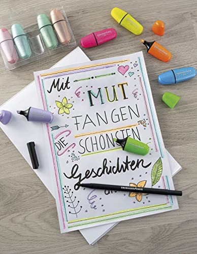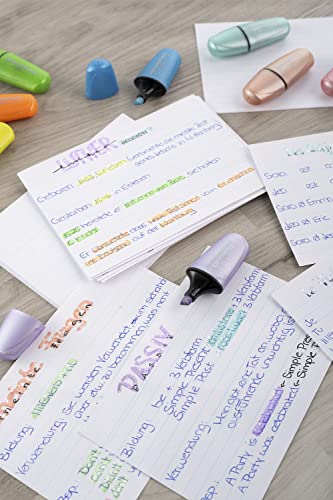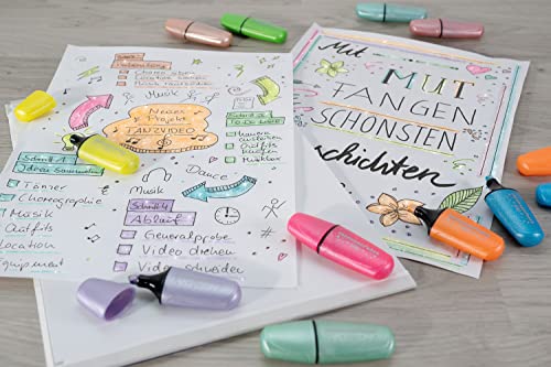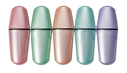 Eberhard Faber 551409 - Mini evidenziatori di testo con punta a cuneo, 5 evidenziatori in colori pastello con effetto glitter, evidenziatore per scuola, università, ufficio e tempo libero