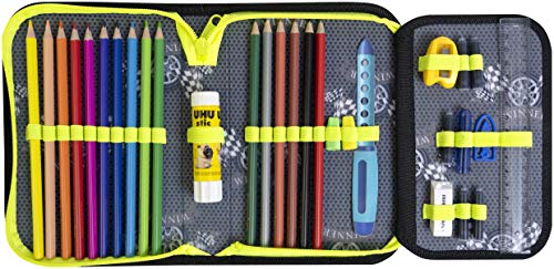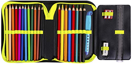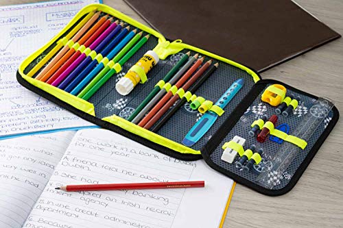 Eberhard Faber 577574 - Astuccio per matite per alunni Race Car con sportello interno e cerniera, astuccio per matite con 32 matite colorate e altri utensili per scrivere e disegnare