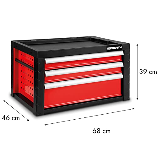 EBERTH Cassetta degli attrezzi rosso senza attrezzi (3 cassetti con cuscinetti a sfera, 2 pratiche maniglie, chiudibile a chiave, metallo verniciato a polvere)
