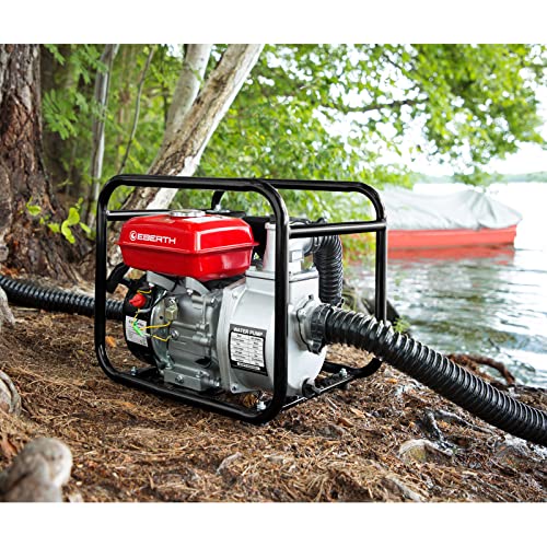 EBERTH 6,5CV Motopompa a Scoppio 4 Tempi 60.000l/h, Raccordo 3 Pollici, Pompa Acqua fino a 30m Altezza Massima Acqua, Aspira fino a 7m, Pompa Autoadescante, Motore a Scoppio e Avviamento a Strappo