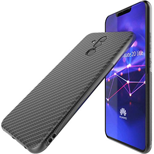 EbestStar - Cover Compatibile con Huawei Mate 20 Lite (2018) Custodia Protezione Silicone Design Fibra di Carbonio Anti Scivolo, Nero + Vetro Temperato [Apparecchio: 158.3 x 75.3 x 7.6mm, 6.3'']