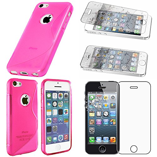 EbestStar - Cover Compatibile con iPhone SE 5S 5 Custodia Protezione S-Line Design Silicone Gel TPU Morbida e Sottile, Rosa + Pellicola Vetro Temperato [Apparecchio: 123.8 x 58.6 x 7.6mm, 4.0'']