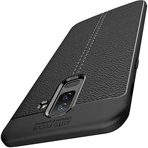EbestStar - Cover Compatibile con Samsung A6+ 2018 Galaxy A6 Plus SM-A605F Custodia Silicone Gel Morbida Sottile Pelle Design, Nero + Vetro Temperato [Apparecchio: 160.2 x 75.7 x 7.9mm, 6.0'']