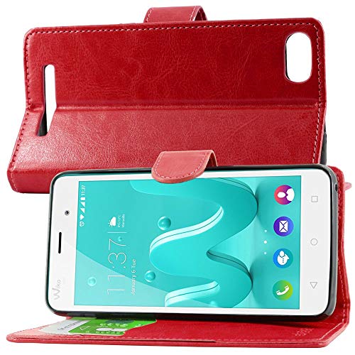 EbestStar - Cover Compatibile con Wiko Lenny 3 Jerry Custodia Portafoglio Pelle PU Protezione Libro Flip, Rosso + Pellicola Vetro Temperato [Apparecchio: 145 x 73.1 x 9.9mm, 5.0'']