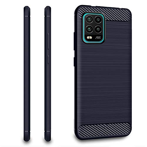 EbestStar - Cover Compatibile con Xiaomi Mi 10 Lite Custodia Protezione Silicone Gel TPU Design Fibra di Carbonio Anti Scivolo, Blu Scuro [Phone: 163.7 x 74.8 x 7.9 mm, 6.6'']