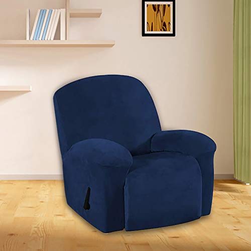 EBETA Velluto-ottico Copripoltrona Fodera per Poltrona, Coprisedile Chivas Poltrona Reclinabile Relax Completo Elasticizzato con Tasche (Blu navy)