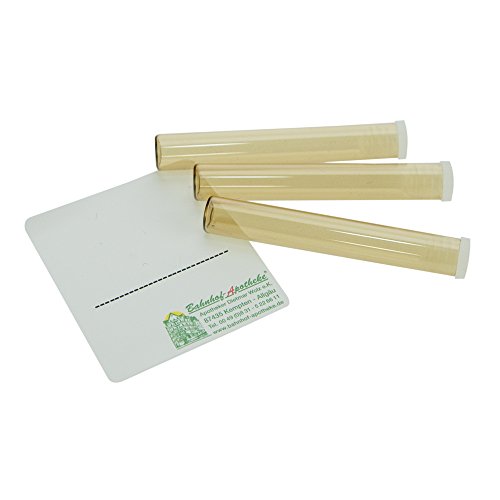 Misura delle fiale per globuli: diametro 8 mm, altezza 55 mm / capacità: ca. 1,5 - 2 grammi / Peso: ca. 3 grammi